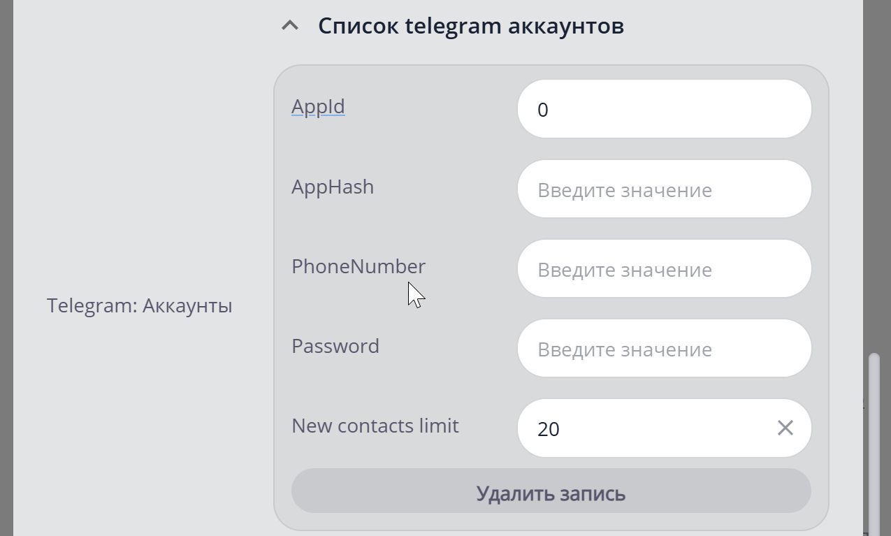 В поле Номер телефона нужно вставить номер телефона, к которому подключен telegram-аккаунт в формате +7**********