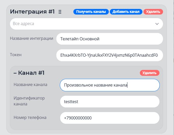 Указываете произвольное название интеграции. В поле Токен вставляете скопированный Токен из интерфейса Teletype и нажимаете «Получить каналы»
